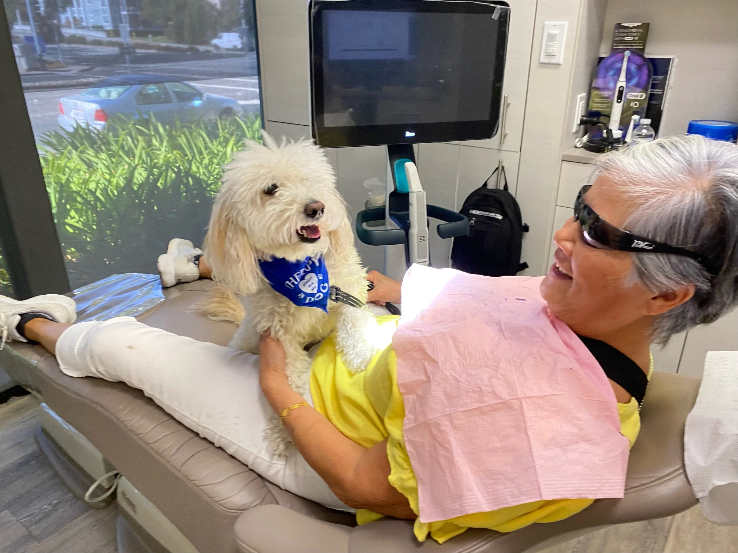 We have seen therapy dogs teams prevalent in hospitals, nursing homes, schools, and libraries. Multiple research has shown that stroking and cuddling with therapy dogs will lower blood pressure and reduce heart rate. We hope that as more dentists are aware of these positive physiological and emotional benefits, they can use therapy dog teams as one additional way to help their patients feel more comfortable during appointments.